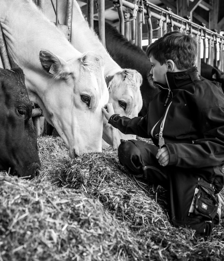 Große Weideflächen, saftige Almwiesen und gesunde Höhenluft sind die perfekte Umgebung für unsere Tiere. Die Rinder leben artgerecht und mit viel Bewegungsfreiheit. Im Frühling und Herbst grasen sie auf hofeigenen Weiden, im Sommer verbringen sie Zeit auf der Alm im Karwendel und im Winter stehen ihnen großzügige Laufställe am Hof zur Verfügung.