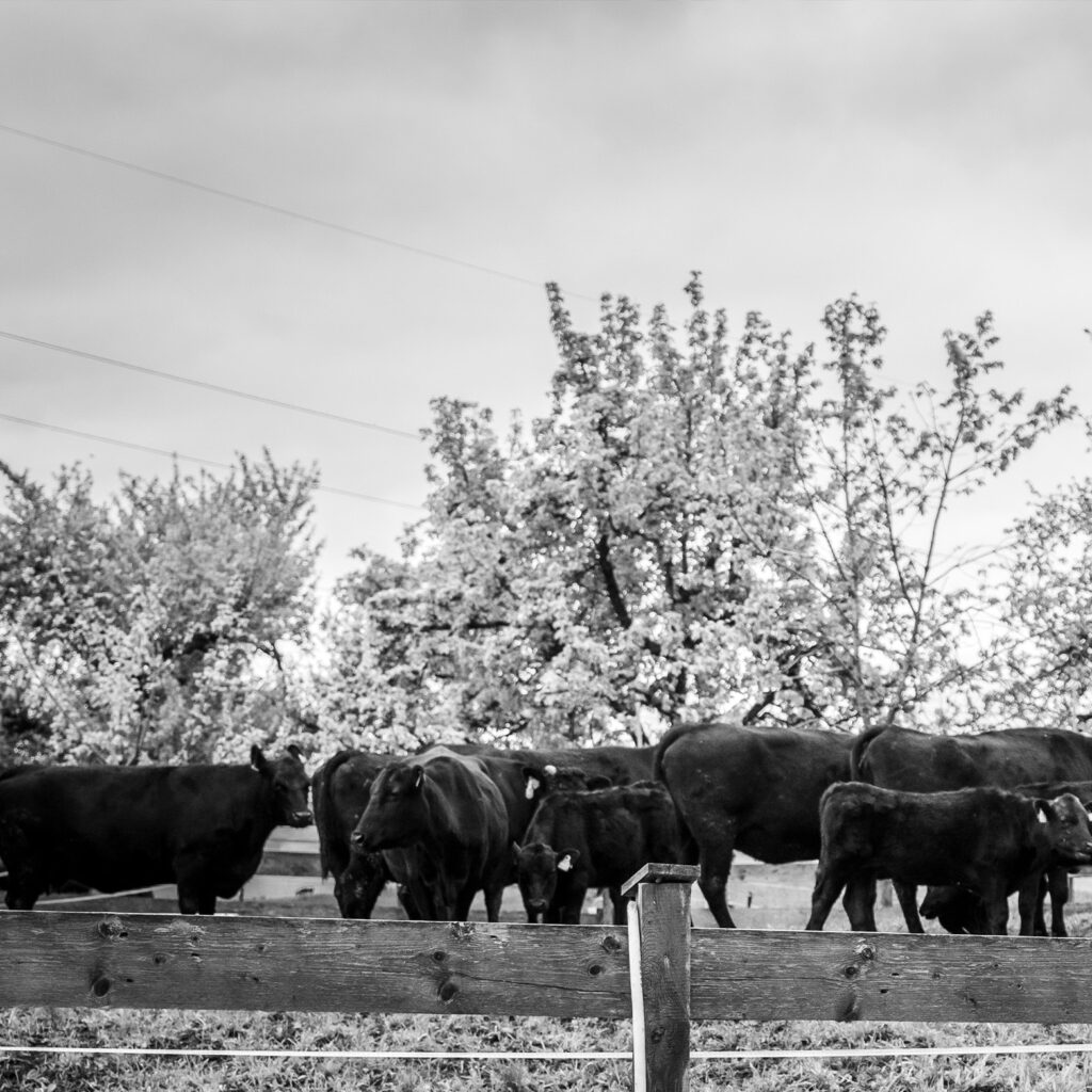 Für den richtigen Rindfleischgeschmack muss den Rindern vor allem genügend Zeit zum Wachsen gegeben werden. Diese wird bei uns überdurchschnittlich lange angesetzt – bei den Angus 24 Monate, bei den Wagyus mindestens 30 Monate. Dadurch gewährleisten wir einen hohen Anteil an intramuskulärem Fett, ein wichtiger Geschmacksträger! Der leidenschaftliche und respektvolle Umgang mit den Kühen hat für uns oberste Priorität. Wir arbeiten mit der benachbarten Hofmetzgerei zusammen, um die Schlachtung so stressfrei wie möglich zu gestalten. Dort reift das Fleisch etwa drei Wochen lang im Ganzen, danach zum Teil in einzelnen Stücken.